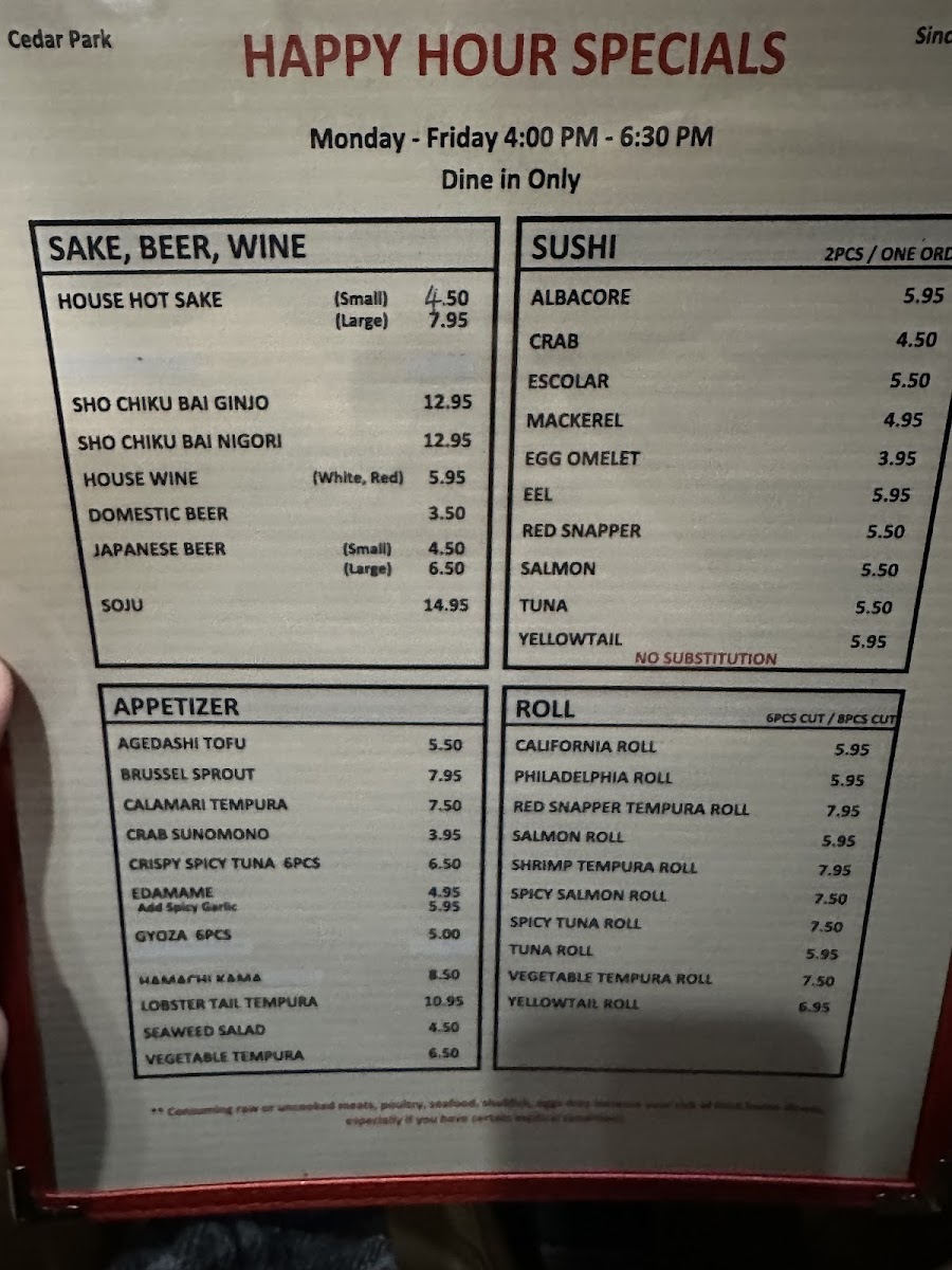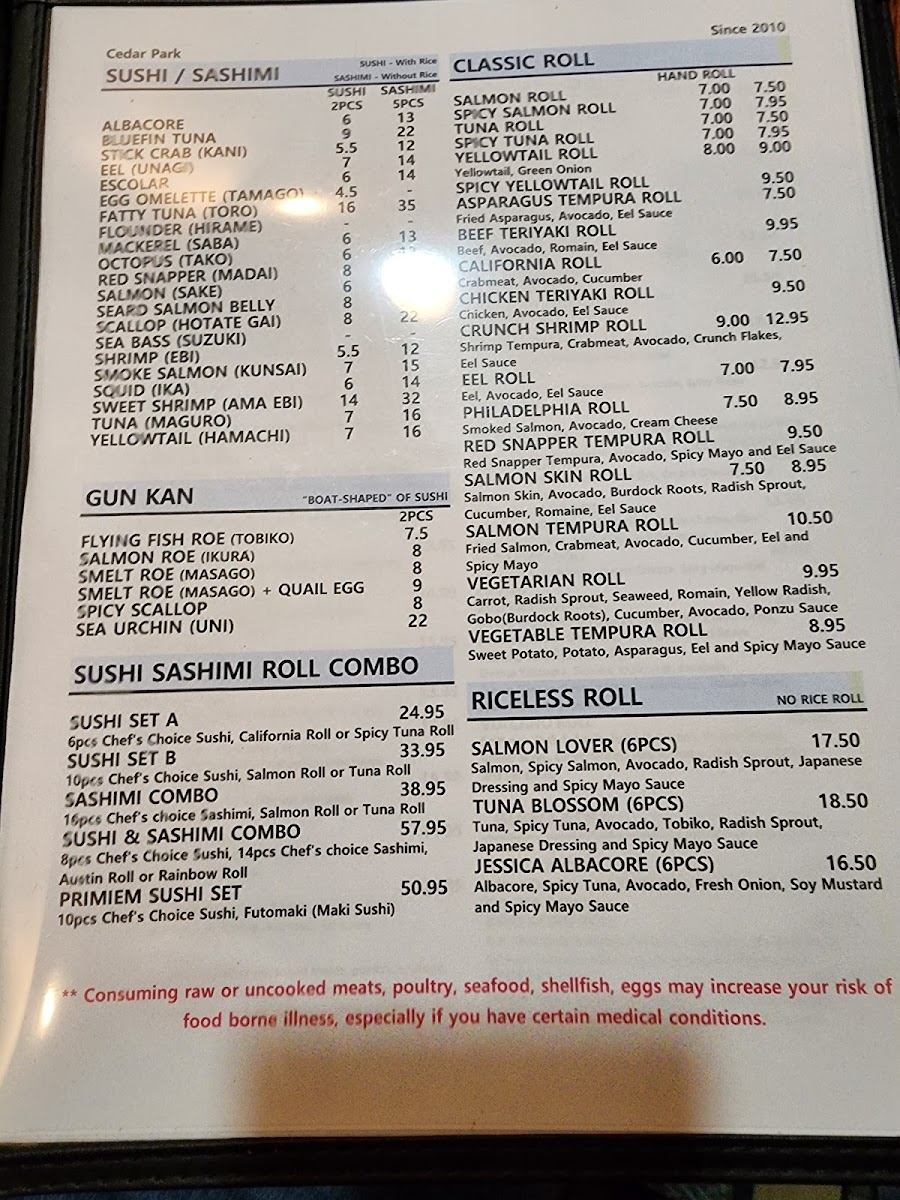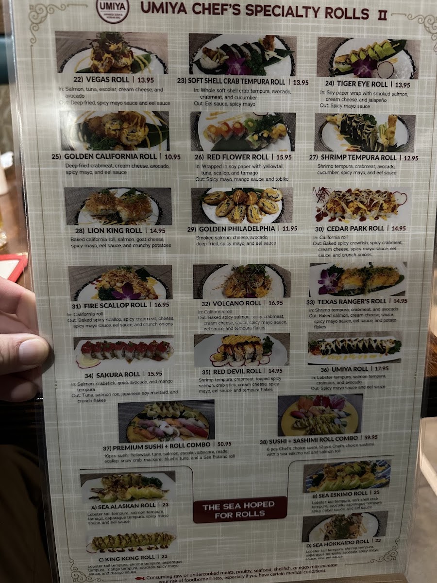 Umiya Cedar Park Menu